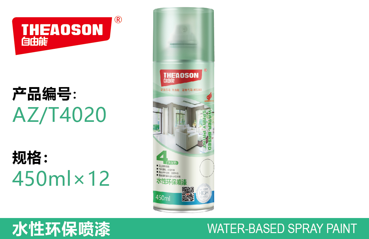 本產品符合RoHS測試,為無鉛之水性環保配方。居家及工業均可使用。干燥前可用水清洗,干燥后耐雨水和日照。氣味溫和,噴霧細膩,不易產生流掛,噴涂效果良好,無強烈有機溶劑之刺鼻氣味。AZ-T4020水性環保噴漆 |