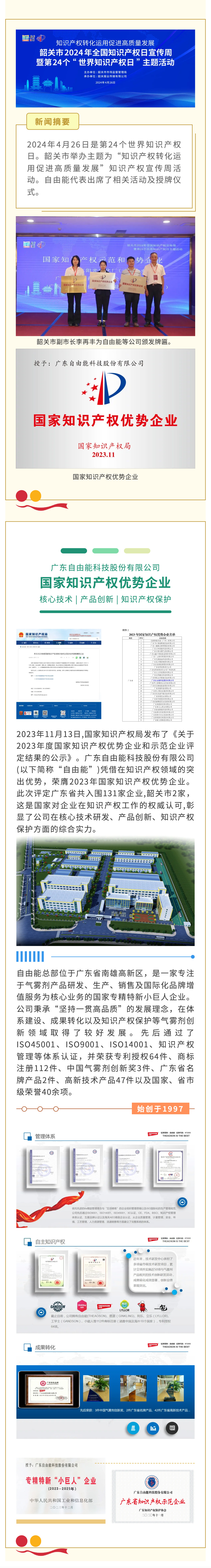 自由能出席“國家知識產權優勢企業”授牌儀式